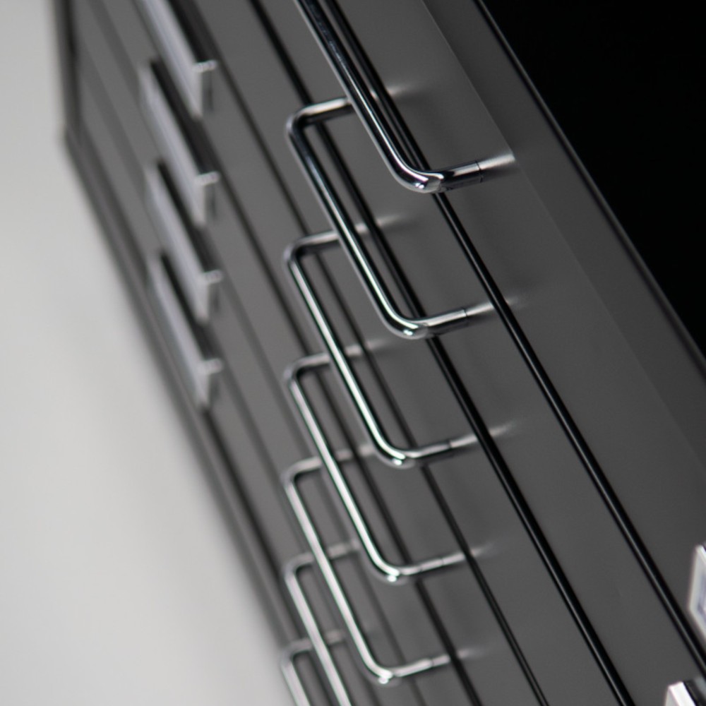La Cassettiera Draftech Formato A0 presenta 10 cassetti con estrazione massima di 2/3, che scorrono su cuscinetti a sfera. Tutti dotati di serratura.